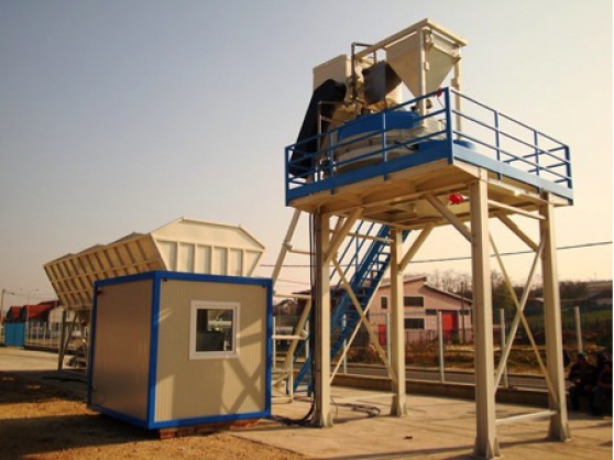 Capacity 30 - 40 m3/hour, 4 aggregate storages 20 m3 with pneumatic flaps of control. Planetary mixer 1125/750 l with skip feed Sicoma (Italy), conveyor of feed aggregates, additives pump, automatic control system of the plant BETONOMIX, insulated control cabin. Air compressor 270 l.