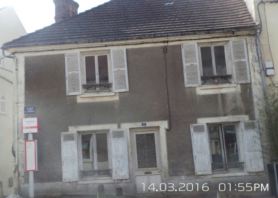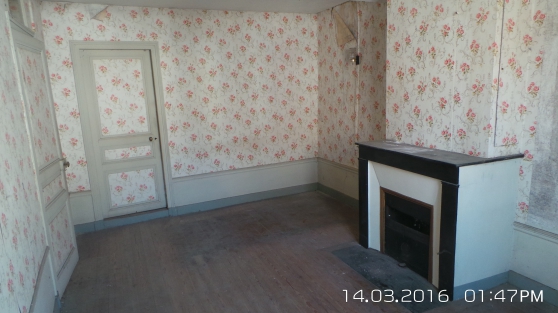 Centre bourg, tous commerces, maison ancienne de 110 m² possible, comprenant au RC, entrée avec escalier, cuisine, salle à manger avec cheminée, WC.