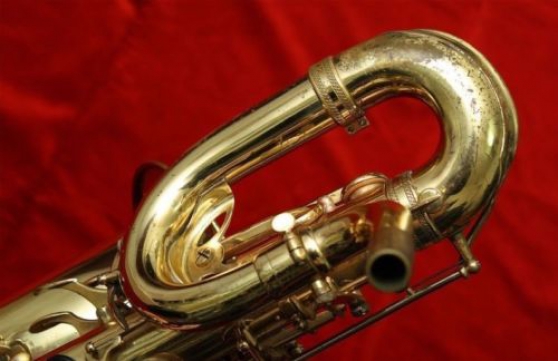 Selmer MARK VI Baritone Saxophone en très bon état. Le sax est unique car joue à bas Ab et il est très rare. Le cor est prêt à jouer. Laque originale en or - 98%.